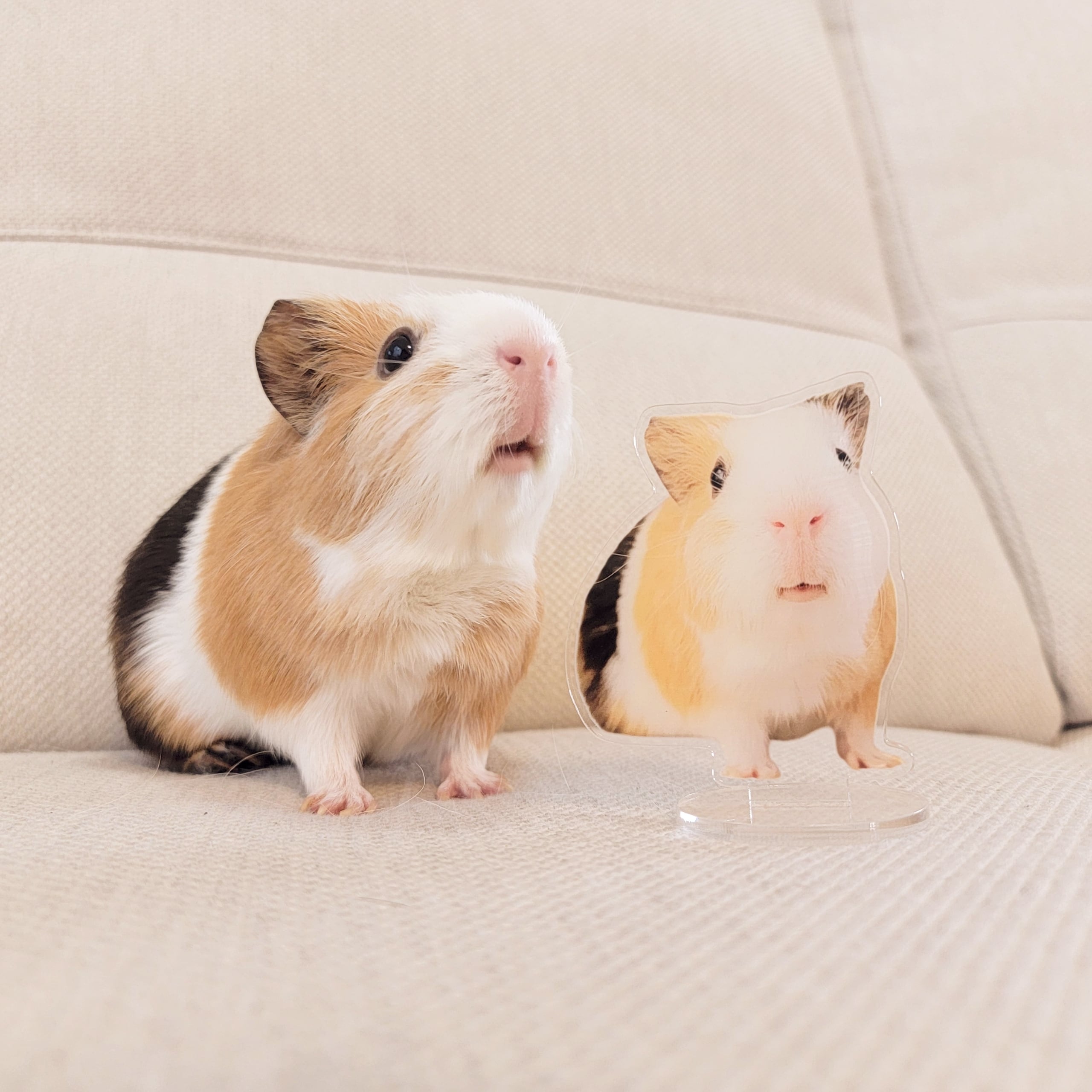 「もふもふペットCafe」のモルモット、みたらしの大きめなアクリルスタンドです。 サイズ : 高さ約 8cm