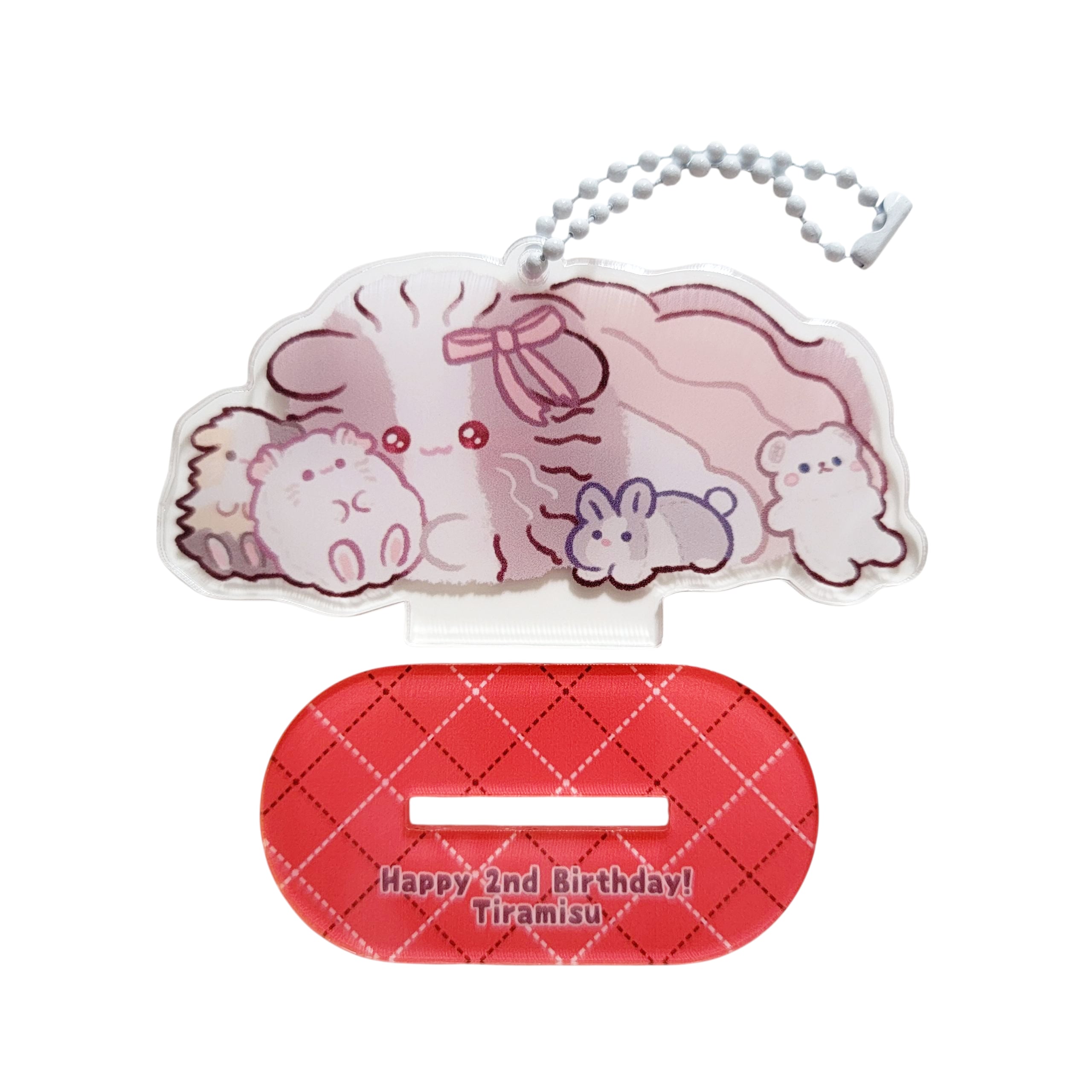 モルモットの五女、てぃらみす2歳のお誕生日記念アクリルスタンドキーホルダーです。