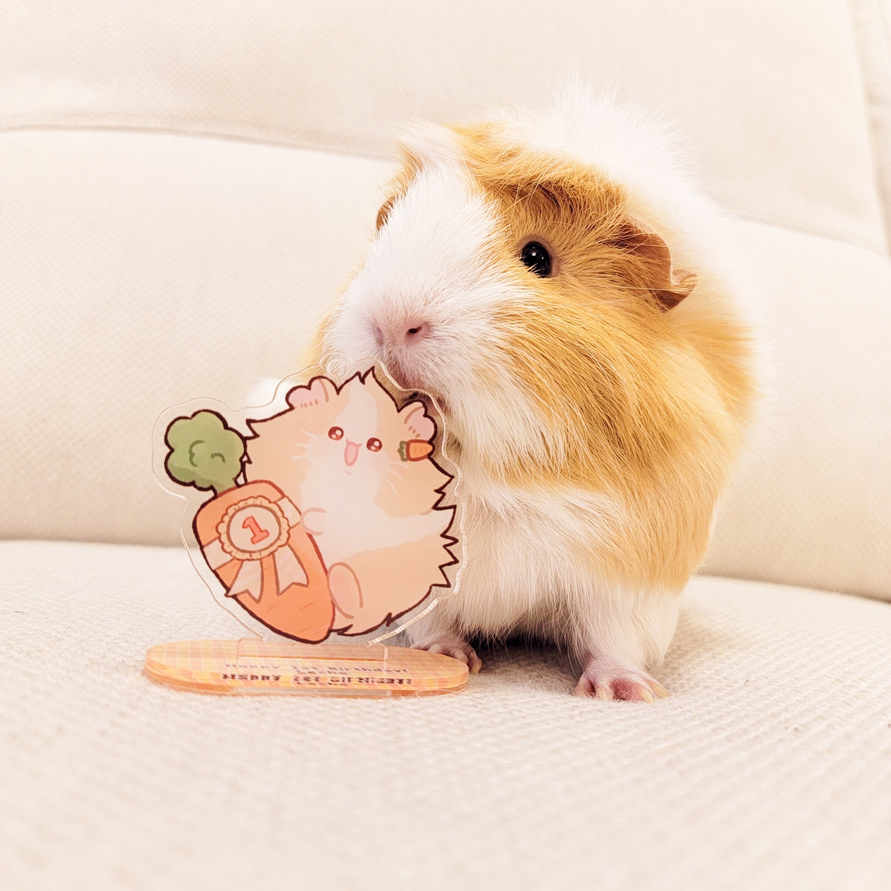 モルモットの七女、れーちぇ1歳のお誕生日記念アクリルスタンドキーホルダーです。