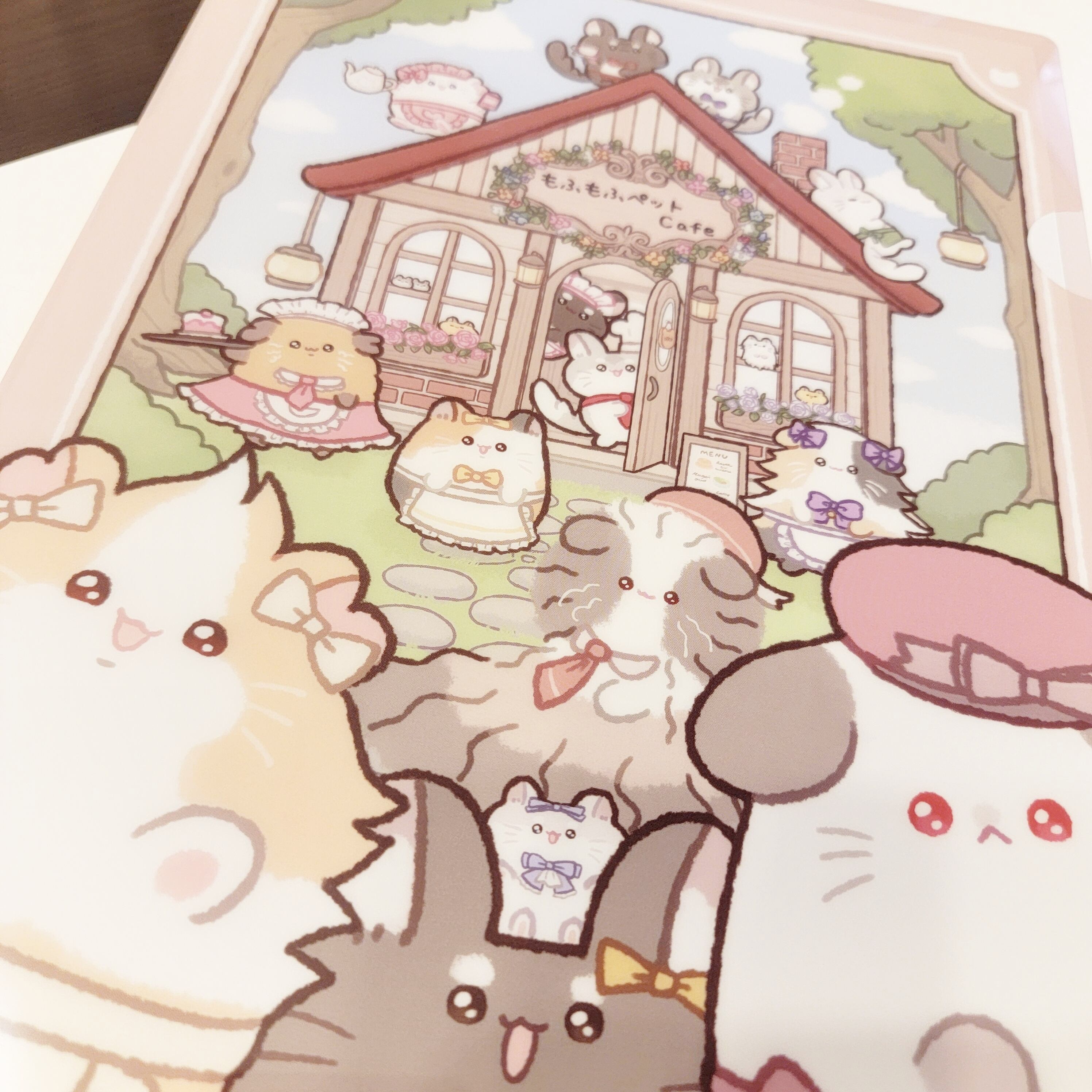 「もふもふペットCafe」のお店をイメージしたイラストを使用したクリアファイルです。 サイズ : A4用 (310mm×220mm)