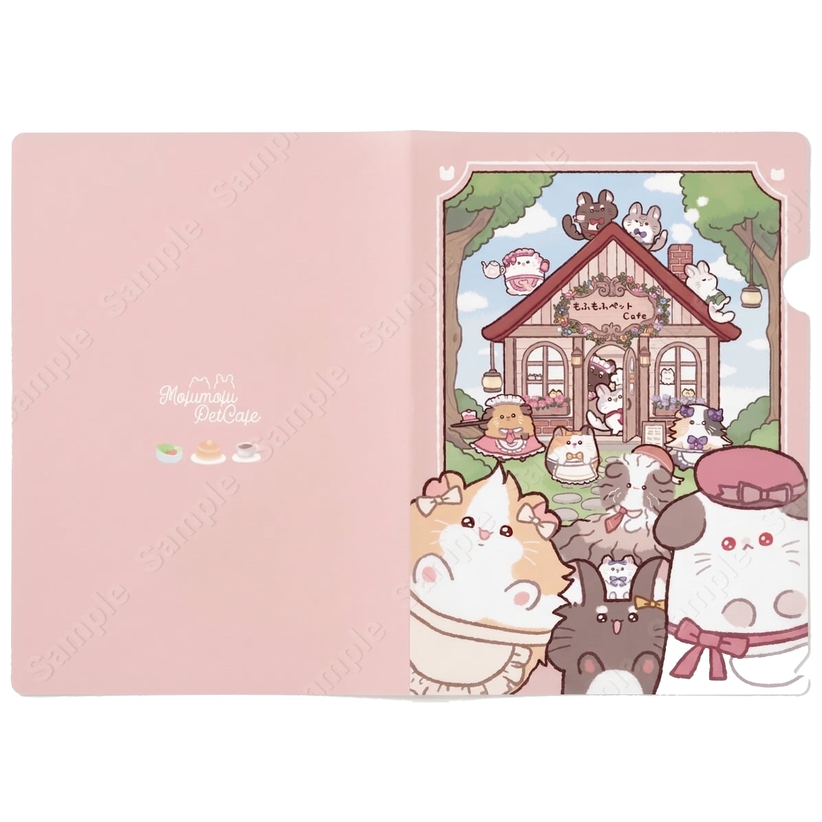 「もふもふペットCafe」のお店をイメージしたイラストを使用したクリアファイルです。