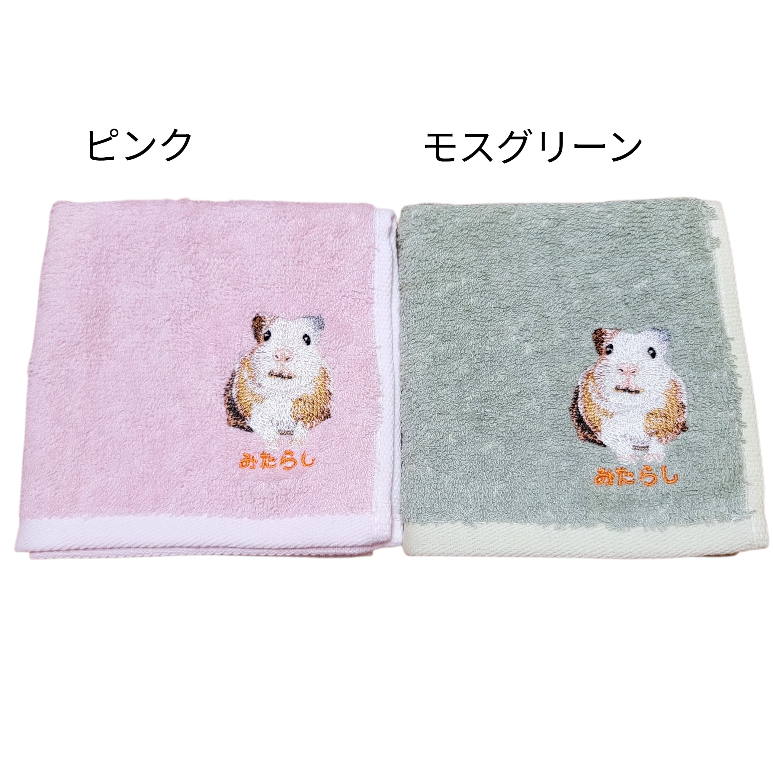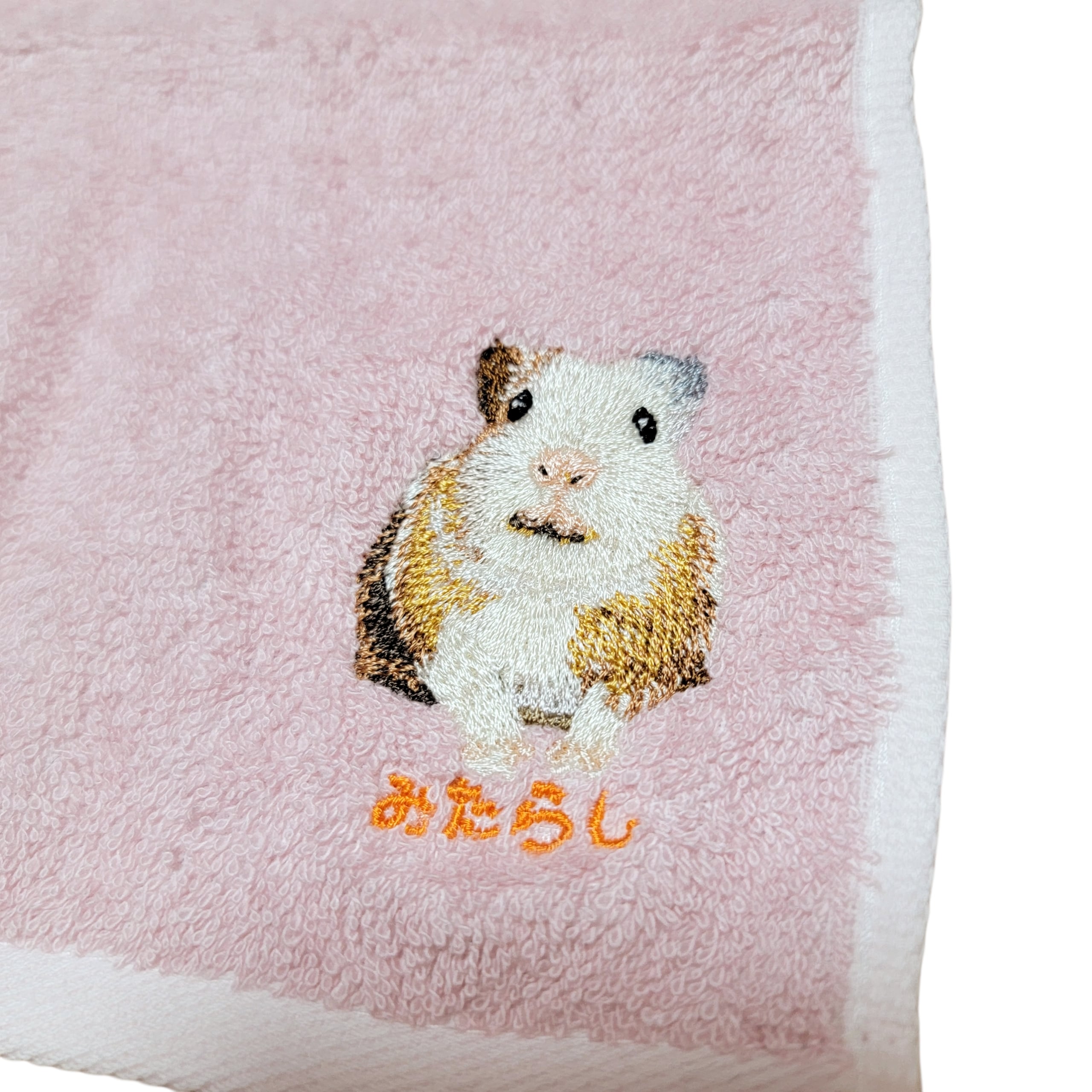 イングリッシュモルモットの「みたらし」が刺繍された、特別なハンカチ。