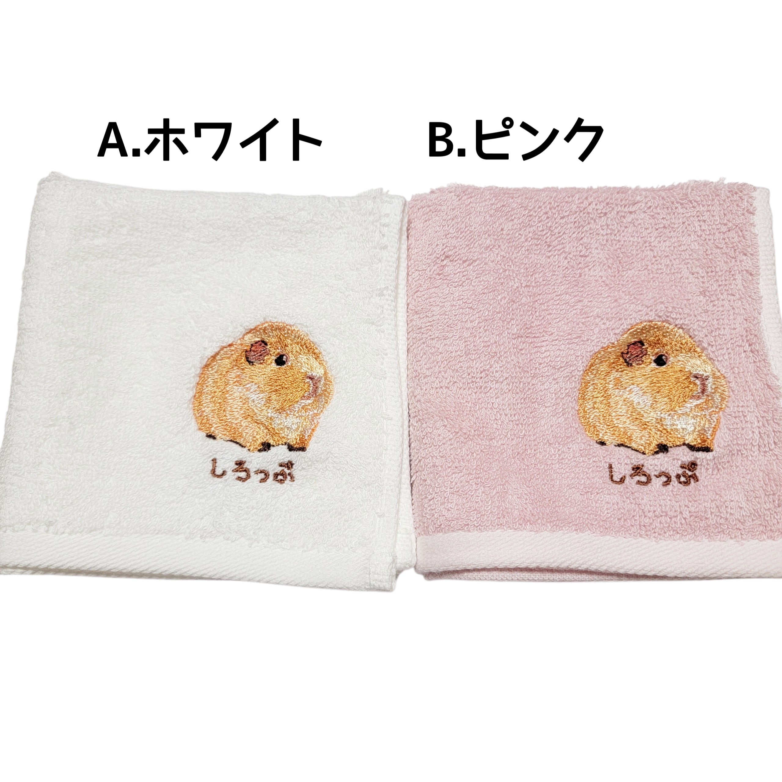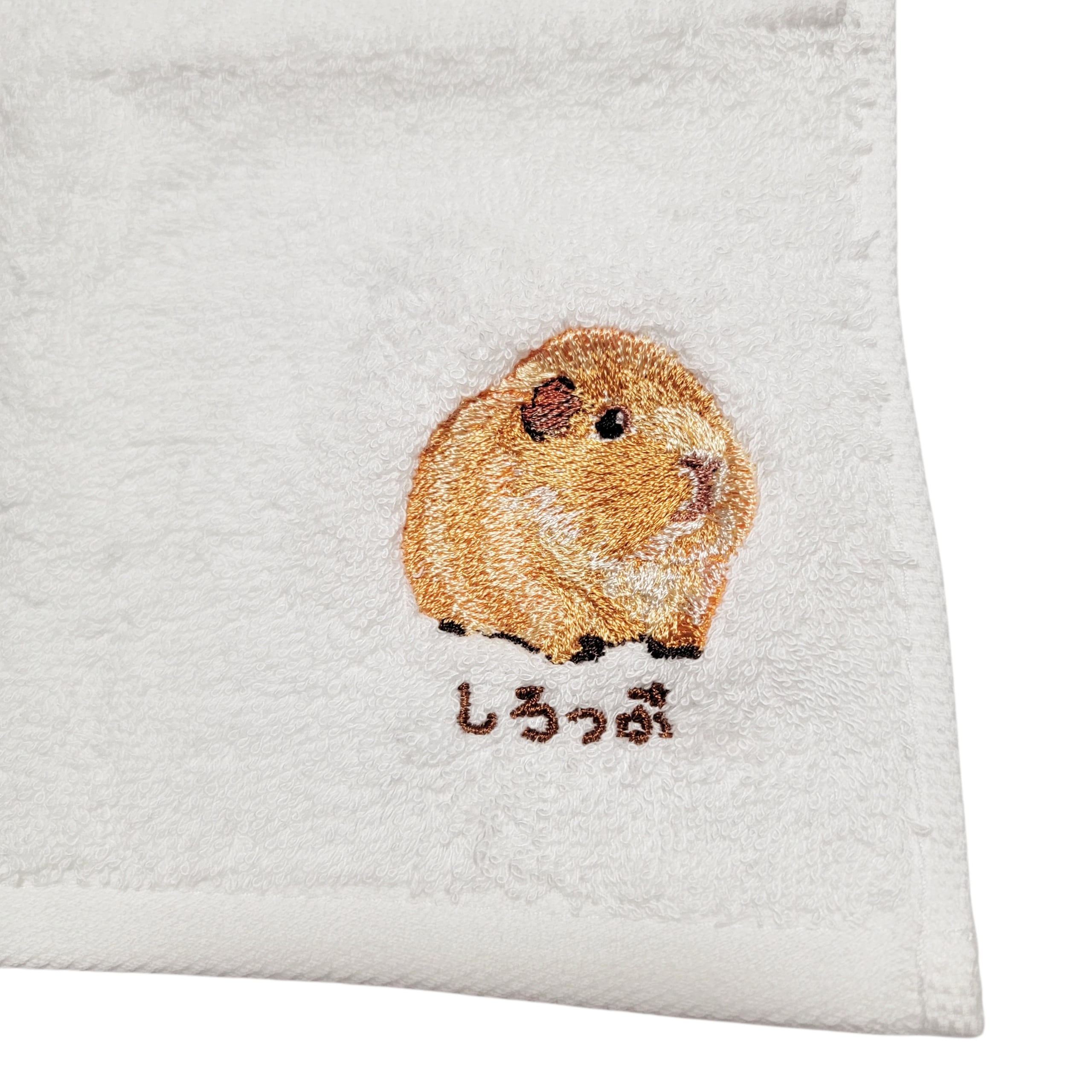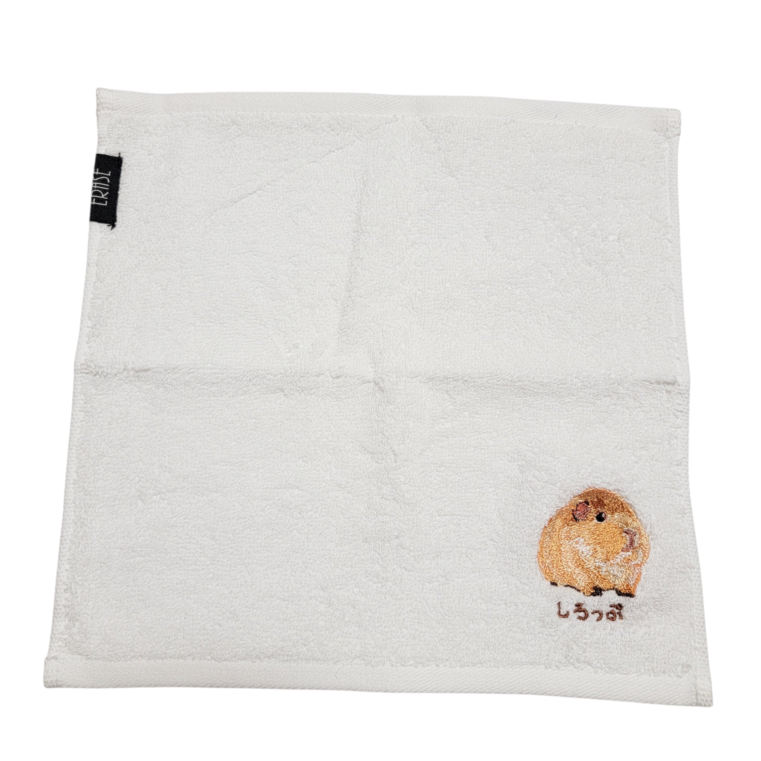 テディモルモットの「しろっぷ」が刺繍された、特別なハンカチ。