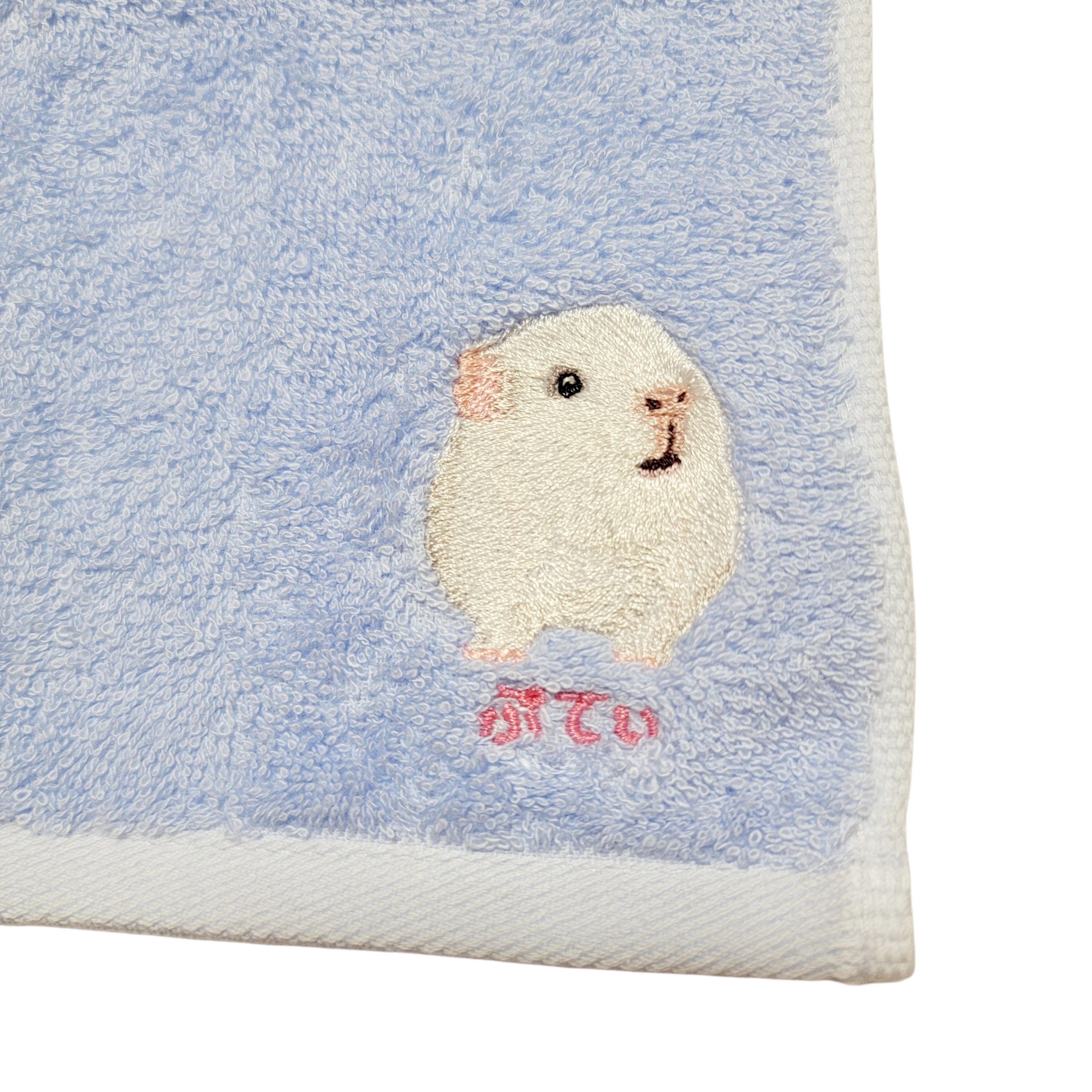 テディモルモットの「ぷてぃ」が刺繍された、特別なハンカチ。